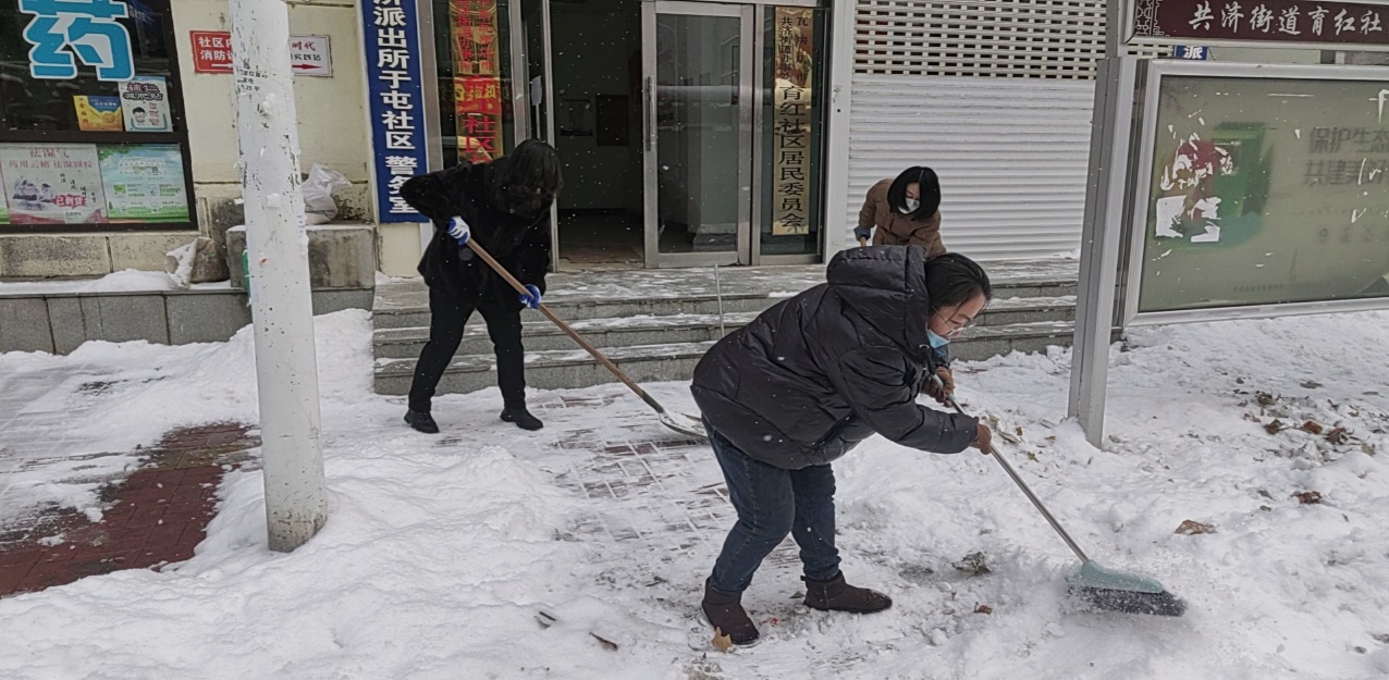 12月19日,我市又有降雪,共济街道育红社区党总支以雪为令,带领社区工作人员提早到单位,迅速安排部署,开展扫雪除冰活动,大家浴“雪”奋战,坚持在清雪第一线。