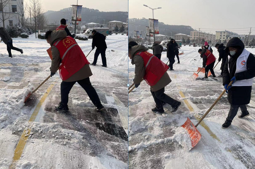 天气虽然寒冷,却抵挡不住大家扫雪的热情,志愿者们拿着扫帚和雪铲互相配合,铲雪扫雪运雪,齐心协力干劲十足,经过一上午的奋战,人行道上的积雪已被清扫干净,为办事群众们的出行开出了“安全路”。