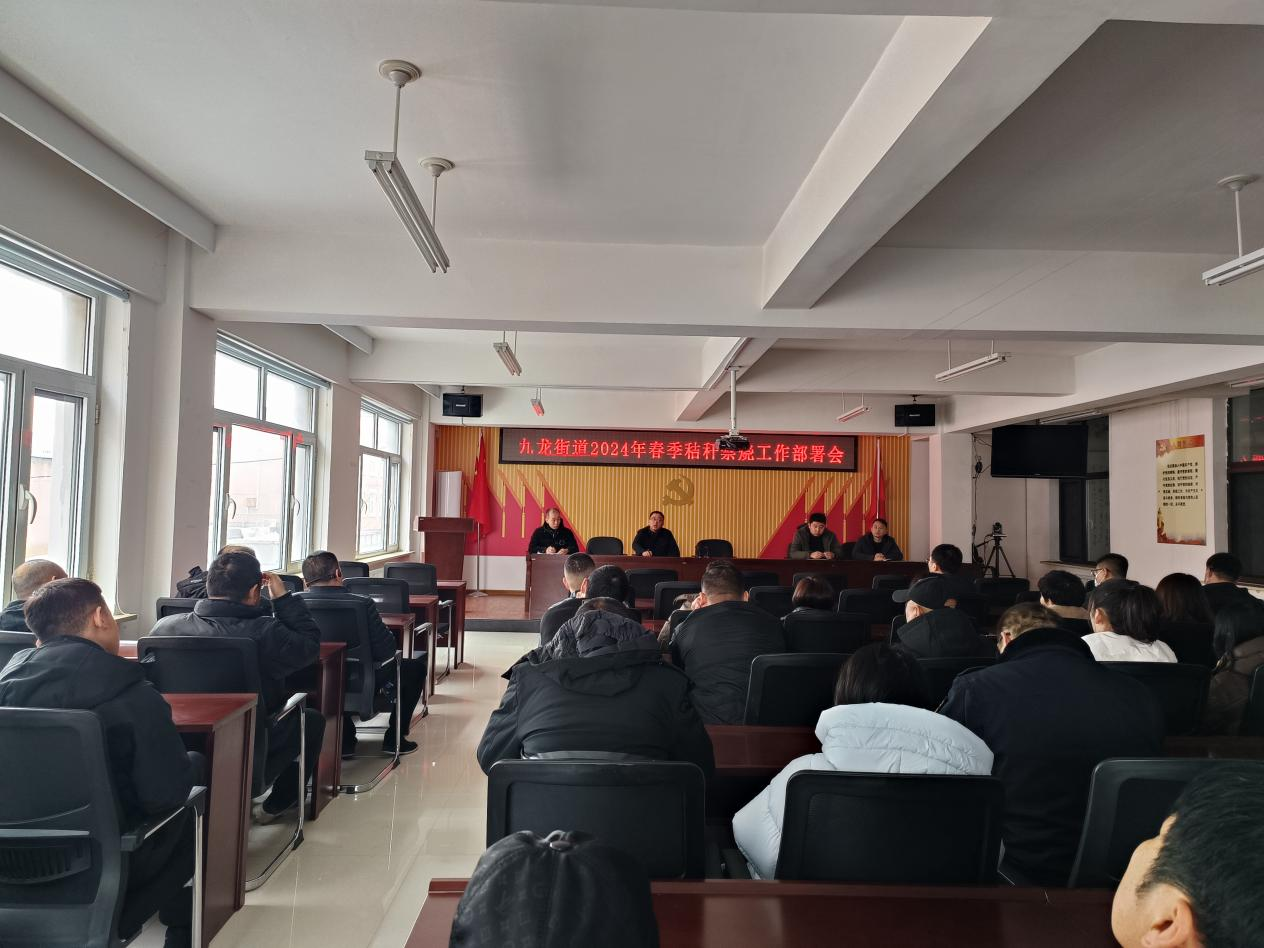 为做好秸秆禁烧工作,认真贯彻落实上级有关工作部署,全力以赴打好春季秸秆禁烧攻坚战,2月22日,九龙街道召开2024年春季秸秆禁烧工作部署会。街道全体机关干部及各村书记参加会议。