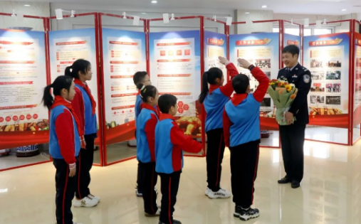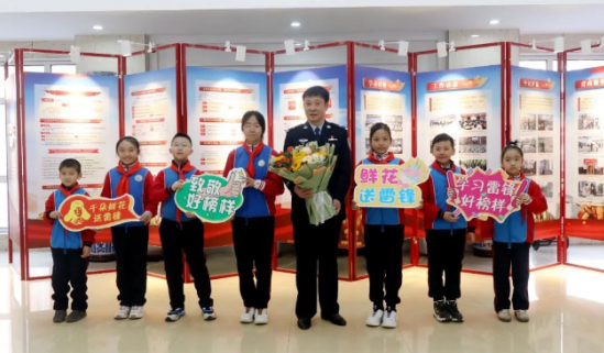 在一楼大厅,少先队员们庄严地向杨本嵩敬礼,并为他敬献了鲜花。杨本嵩为孩子们讲述了雷锋同志助人为乐的事迹,雷锋同志舍己为人、无私奉献的精神深深打动了孩子们。杨本嵩寄语少先队员们,希望他们把雷锋精神内化于心,外见于行,坚持学习并发扬雷锋精神,沿着雷锋的脚步前行,努力学习,奋发向上,学好本领,做新时代雷锋精神的学习者、传播者、践行者。