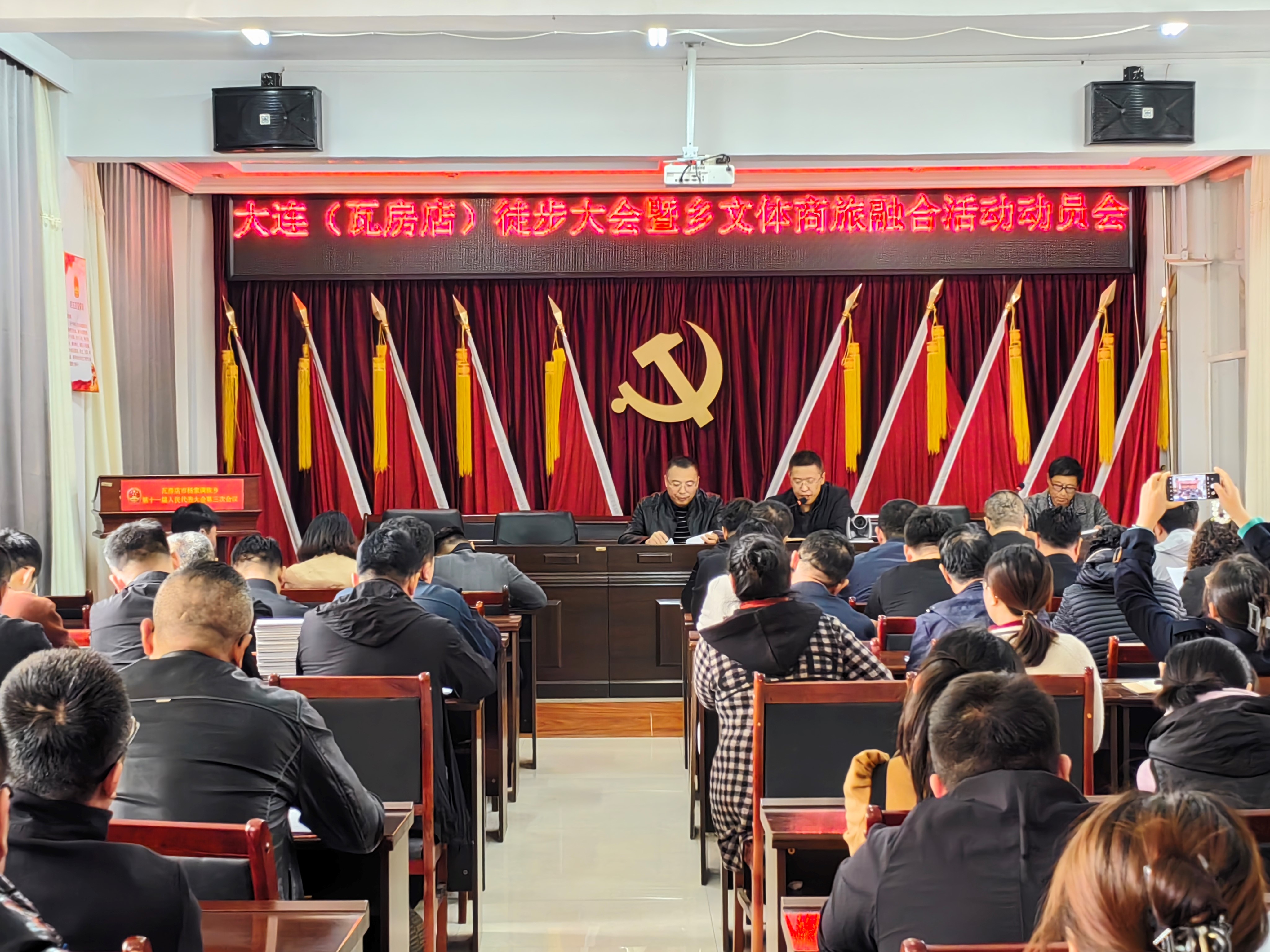 4月11日,杨家满族乡召开大连(瓦房店)徒步大会暨乡文体商旅融合活动动员会,乡领导班子成员、机关干部、各村党总支书记、各驻村第一书记和部分企事业单位负责人共计60余人参会。