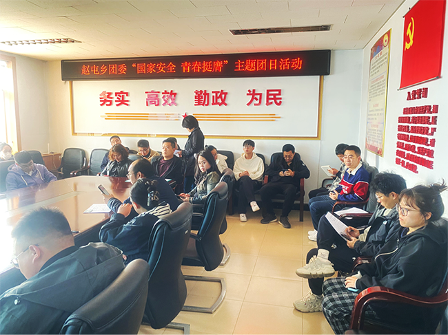 在第九个全民国家安全教育日到来之际,为扎实推动国家安全教育广泛深入普及,进一步加强青年法治宣传教育,增强青年的国家安全意识,赵屯乡团委开展“国家安全 青春挺膺”主题团日活动。