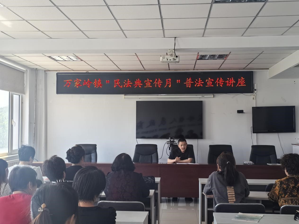 2024 年5月是第四个“民法典宣传月”,为贯彻落实习近平总书记关于“法治是最好的营商环境”重要论述,5月27日,万家岭镇妇联邀请镇司法所王伟所长开展“民法典宣传月”普法宣传讲座,此次活动万家岭镇各村妇联主席和妇联执委、妇女代表40余人参加了活动。