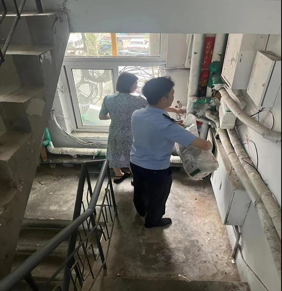 楼道堆积物不仅给居民的生活、出行造成不便,还容易对生命及财产安全造成威胁,引发矛盾纠纷。整治前期,社区在楼道内张贴书面通知告知居民在期限内自行整理,争取宣传到位,做到不漏楼、不漏户。