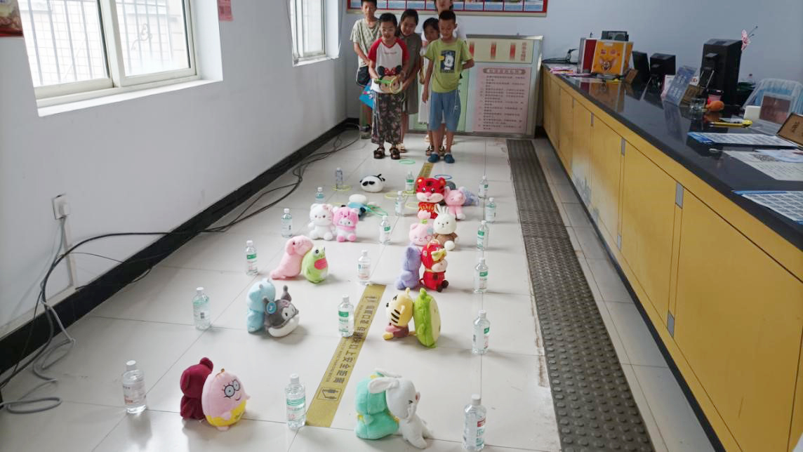 活动开始前,社区工作人员提前把奖品满满当当地摆在规定位置,然后介绍了游戏规则,孩子们需要站在规定线外,每人有5次套圈机会,套中物品即可带走。随着一声令下,孩子们跃跃欲试,使出浑身解数,套圈方法层出不穷,姿势也是五花八门,大家玩得不亦乐乎,时不时爆发出快乐的笑声、欢呼声、加油助威声,现场气氛热闹非凡。
