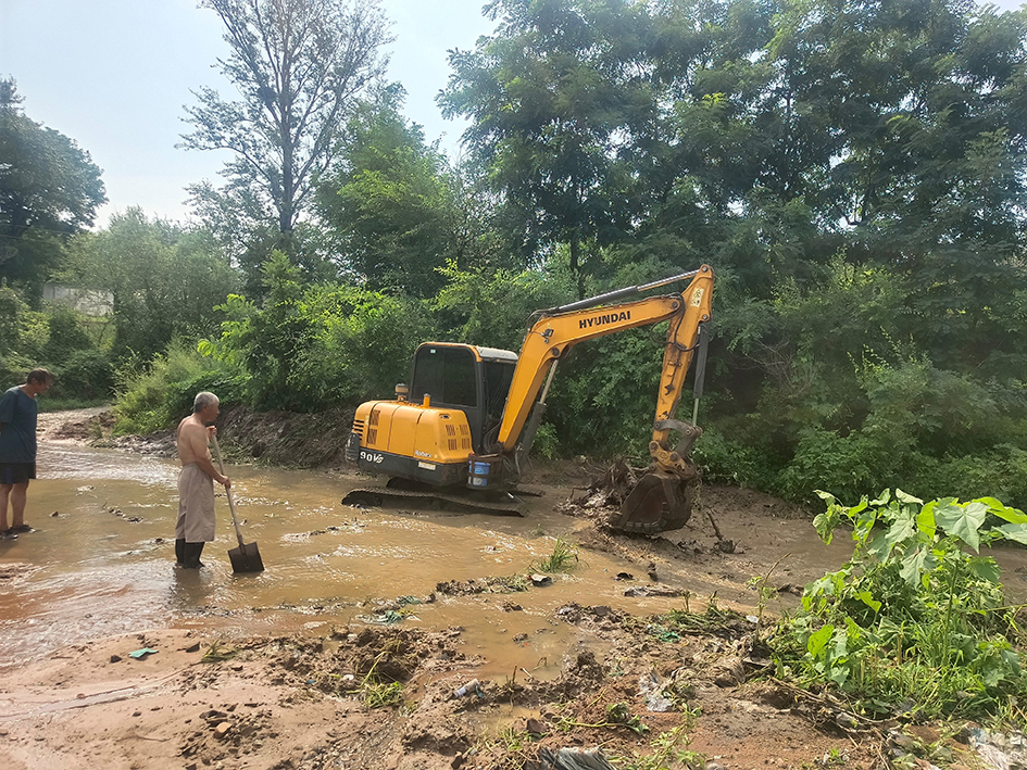 雨过天晴,保障先行。降雨结束后,各村已经开始组织开展现场排查工作,重点关注村民房屋及农作物是否遭暴雨损害、是否存在道路塌陷、田间作业道能否正常通行、排水沟排水是否通畅、垃圾回收点受雨水破坏情况等,争取做到不错过一个受损点位、不放过一处安全隐患。大营子村、曲家沟村、东阳台村、龙王庙村组织人手迅速开展雨后修复重建工作。在村书记的动员与部署下,村民齐心协力借助挖掘机等大型机械,平复田间作业道、疏通排水沟。几个小时的努力过后,田间作业道可以满足村民的通行需要了,排水沟排水畅通无阻了,村民们悬着的心也终于放下了。