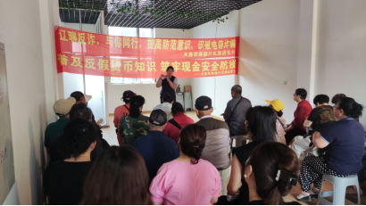 6月20日,大连农商银行瓦房店支行联合中国人民银行大连市分行瓦房店营业管理部、岭东派出所走进岭东街道办事处开展了一场别开生面的金融安全宣传,将专业的反假货币知识、残损币兑换标准以及实用的反诈防骗技能送到了岭东街道居民家门口。