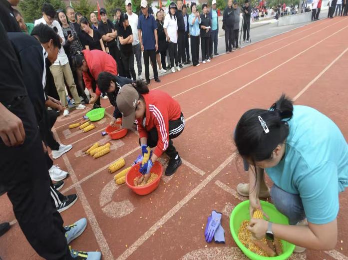 运动会巧妙融入了“丰收”元素,设置了摸石过河接力、足球打靶射门、搓玉米粒接力赛、篮球运球接力、4×100米混合接力和拔河六个集趣味性、竞技性和协作性于一体的比赛项目。赛场上,运动员们热情高涨,奋勇争先。在搓玉米粒接力赛中,队员们争分夺秒,搓落的玉米粒仿佛颗颗金珠,传递着丰收的喜悦;在摸石过河接力中,大家小心翼翼又敏捷迅速,展现了智慧与平衡的完美结合;拔河赛场更是呐喊震天,将团队协作的力量发挥到极致;接力跑道上,队员们风驰电掣,接力棒传递着速度与激情。整个比赛过程紧张激烈、妙趣横生,加油声、欢笑声此起彼伏,充分体现了“友谊第一、比赛第二”的体育精神和“团结协作、奋勇拼搏”的团队风采。