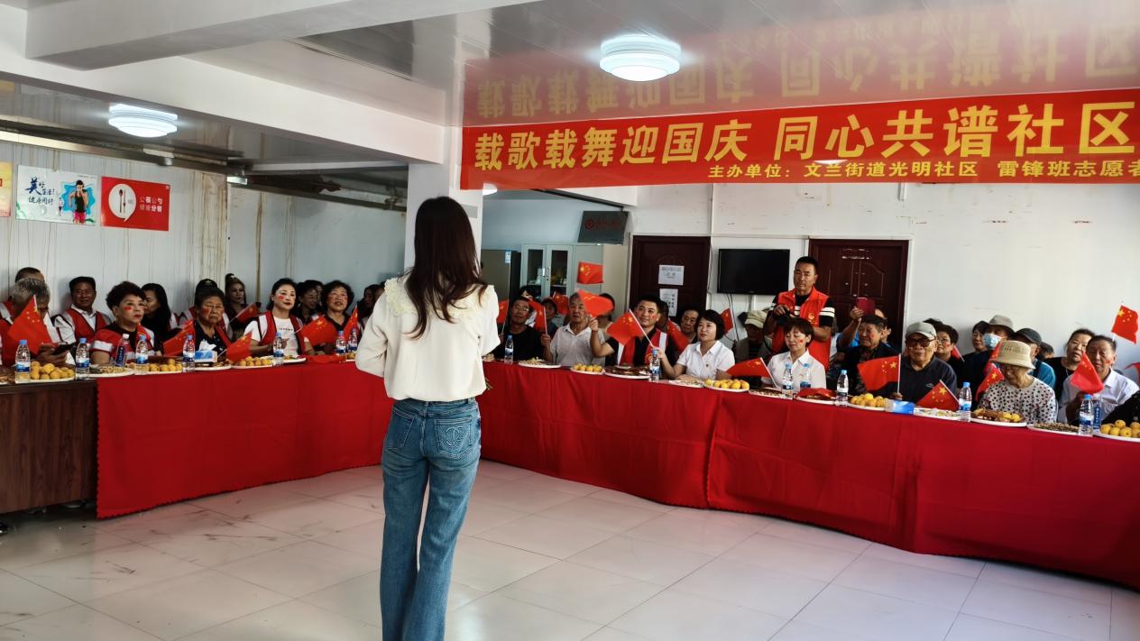 为弘扬爱国主义精神,丰富基层群众文化生活,市新时代文明实践中心、光明社区新时代文明实践站携手雷锋班志愿者协会共同举办“月满中秋迎国庆社区汇演颂华章”主题活动,以歌传情、以舞表意,为现场观众带来了一场充满家国情怀的文化盛宴。