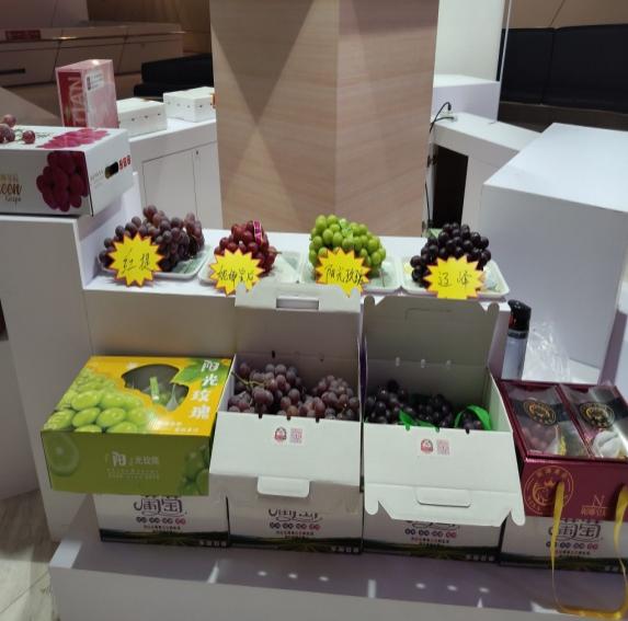 有了品牌的加持,李官镇生产的优质葡萄得以走进第十四届中国国际专利技术与产品交易会。交易会期间,国内外客商在品鉴了妮娜皇后、阳光玫瑰、红提、辽峰等品种的葡萄后纷纷给与高度评价,竖起大拇指。