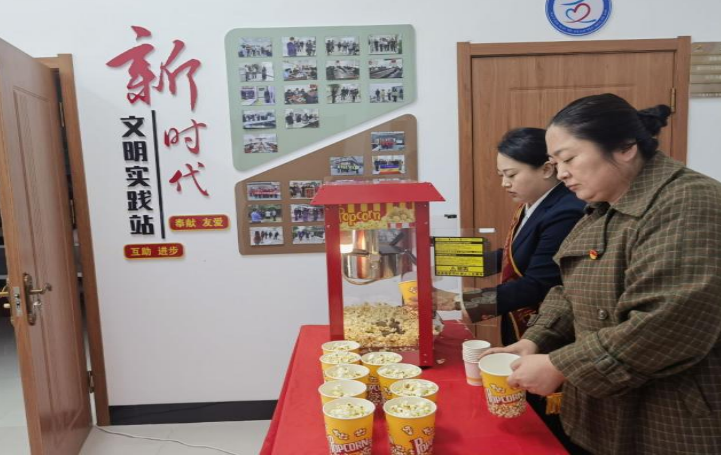 社区“睦影厅”内为老人播放着喜剧电影《飞驰人生2》,吉林银行提供观影零食,送上精美礼品,让老人边吃边看,在欢声笑语中感受到节日温暖。