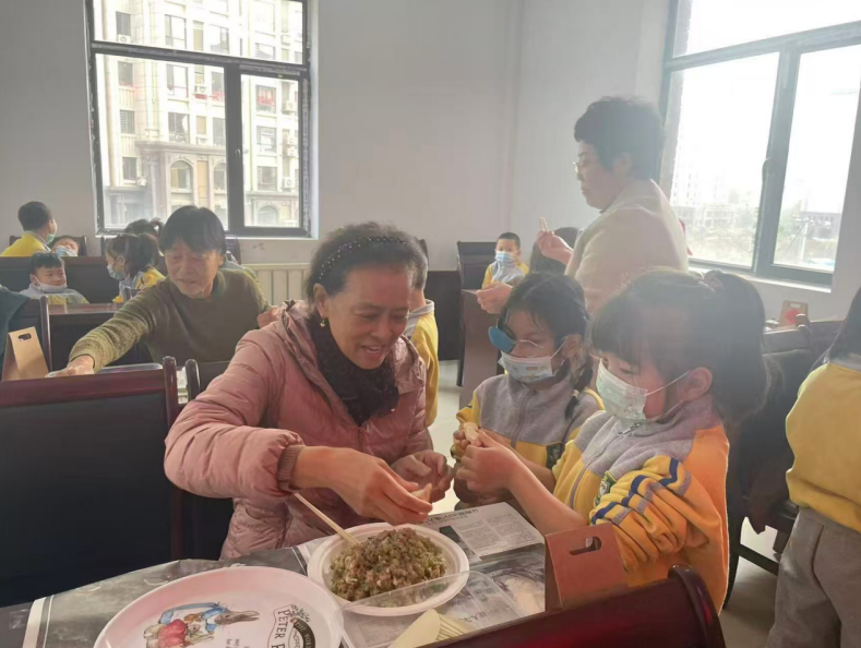 活动现场,热闹非凡。社区工作人员与七彩虹幼儿园的师生们早早来到现场,精心准备包饺子的食材和工具。大家围坐在一起,一边熟练地包着饺子,一边亲切地交流着。七彩虹幼儿园的小朋友们也积极参与其中。他们用稚嫩的小手,认真地学着包饺子,虽然包出的饺子形状各异,但每一个都饱含着他们对长辈的敬爱之情。