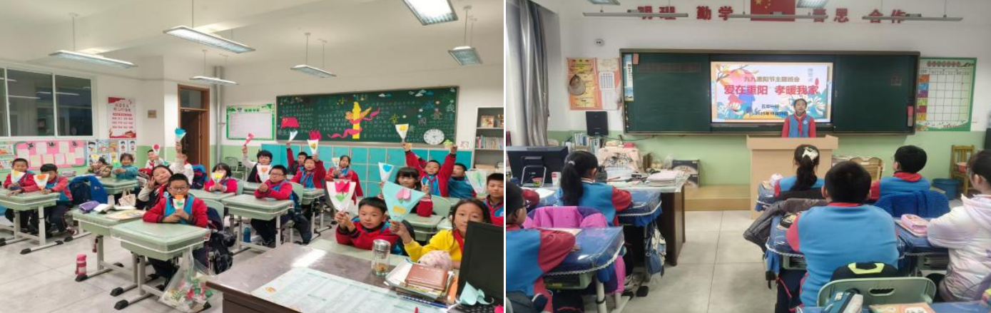重阳节当天,全校统一组织开展了“爱在重阳,孝暖我家”主题班会。各班通过生动感人的敬老故事、丰富多彩的习俗介绍、意境深远的古诗赏析以及切实可行的孝心计划讨论,引导学生深入了解重阳文化。同学们还亲手制作感恩卡、绘画和手工作品,用创意表达对长辈的敬意,实现了认知教育与情感培养的有机融合。