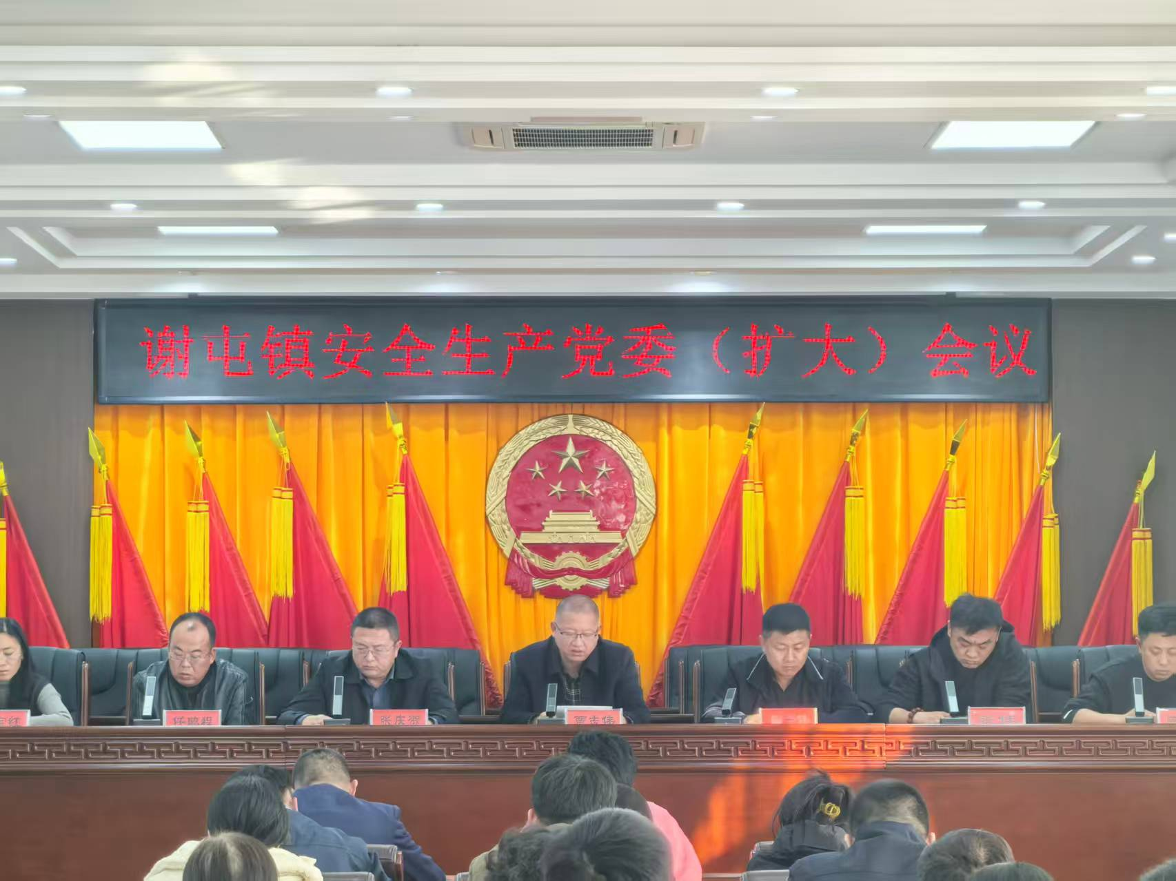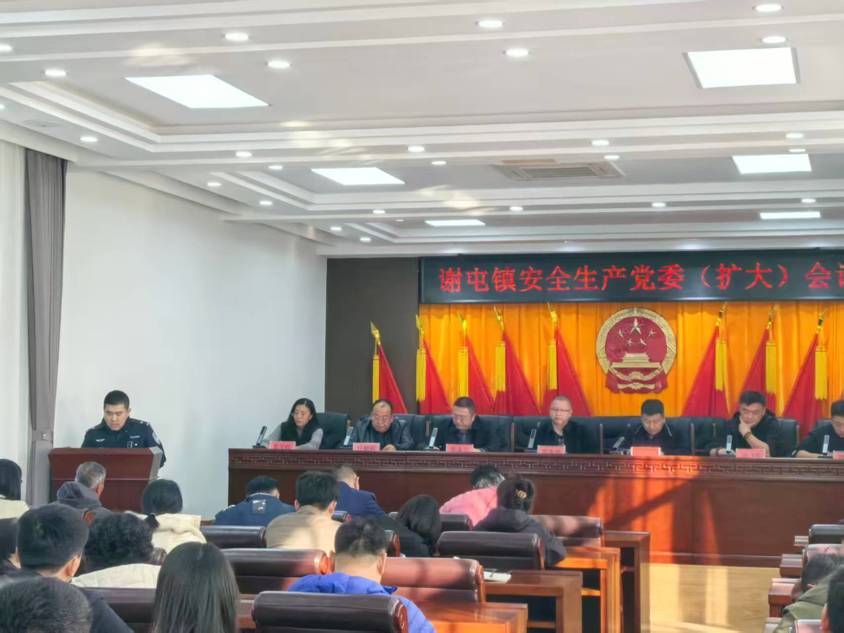 2025年11月4日,谢屯镇召开安全生产党委(扩大)会议,深入贯彻落实上级关于安全生产工作的重要决策部署,全面部署交通、物业、森林防火、消防安全、城镇燃气、危化品工矿商贸等领域的风险防控工作。镇党委副书记主持会议并讲话,召开这次安全生产工作会议,主要任务是深入分析当前全镇安全生产面临的严峻形势,全面总结前一阶段工作的得失,并对四季度安全生产工作进行再动员、再部署、再落实。