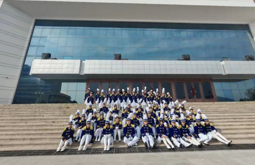 演奏现场,管乐队成员身着统一服装,精神抖擞。《强军战歌》旋律铿锵,尽显青春担当;《歌唱祖国》曲调激昂,满含赤子深情。整齐的节奏、饱满的演绎,将经典曲目蕴含的爱国情怀与奋进力量传递给在场的每一位观众,赢得了阵阵掌声。