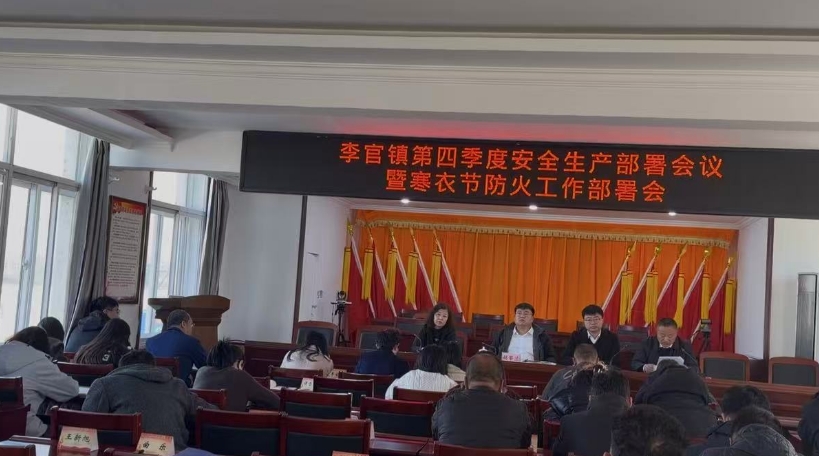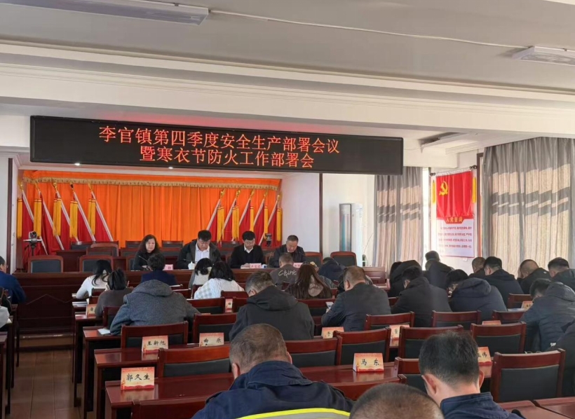 为进一步压实安全生产责任,全面部署第四季度特别是岁末年初安全生产与消防安全重点工作,坚决防范和遏制各类安全事故发生,李官镇于11月19日组织召开了第四季度安全生产部署会议,全镇机关干部、各村书记及第一书记、市场监督管理局、消防大队和高铁李官段负责人等70多名人员参加会议。
