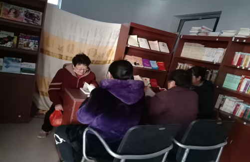 近日,祝华街道张屯村几位村民围坐在书架旁,开启了一场“接地气”的读书小聚。