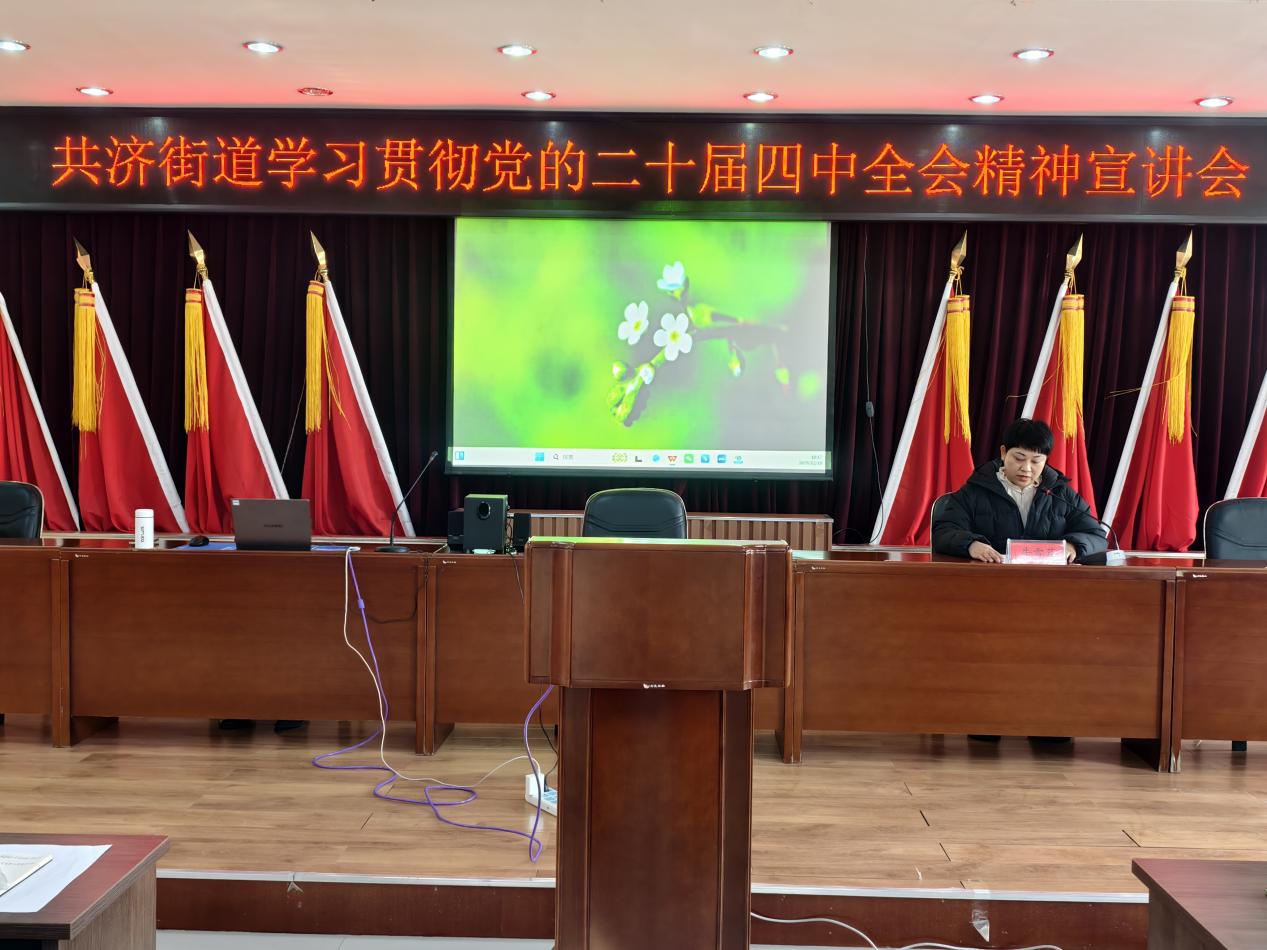 为推动党的二十届四中全会精神在基层落地生根、见行见效,近日,共济街道召开学习贯彻党的二十届四中全会精神宣讲会。共济街道党工委书记、办事处主任分别作宣讲报告,党工委班子成员、全体机关干部及各社区工作人员近60人齐聚一堂,共同学习领会全会精神,凝聚奋进力量。