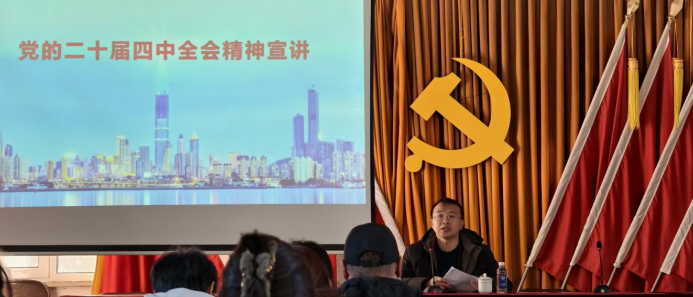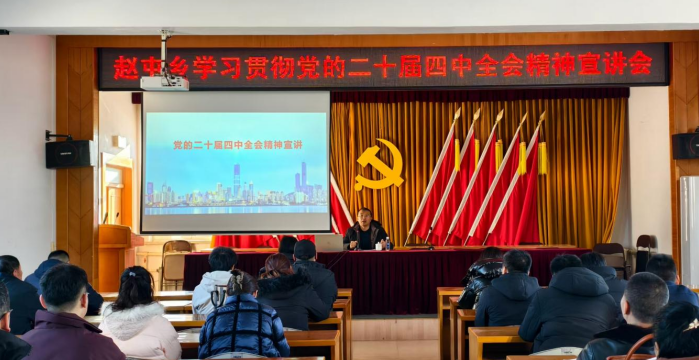 为扎实推进学习宣传贯彻党的二十届四中全会精神,引导全乡党员干部把思想和行动统一到全会精神上来,12月26日,赵屯乡组织开展党的二十届四中全会精神宣讲会,特别邀请市委宣讲团成员、市委宣传部副部长王景做专题宣讲,全体机关干部、村“两委”成员共计50余人参加学习。