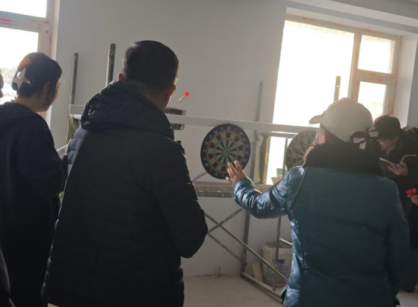 本次活动精心设计了三个集趣味性、协作性和竞争性于一体的比赛环节。“百发百中”飞镖赛瞬间点燃了现场热情。每位选手屏息凝神,瞄准投掷,五发飞镖划过道道弧线,每一次精准命中都引来阵阵喝彩。“圈住好运”套圈比赛充满了轻松与怀旧的气息。选手们手持彩圈,瞄准心仪的纪念品,或果断出手,或谨慎投掷。彩圈在空中纷飞,套中的喜悦、毫厘之差的惋惜声交织,最终三名“套圈达人”成功将好运与奖品一并“圈”入怀中。压轴登场的是“心有灵犀”你比划我猜环节,将活动推向另一个高潮,“表演者”手舞足蹈、表情夸张,“猜词者”全神贯注、思维疾转,不时蹦出的精准答案或滑稽误解引发现场阵阵爆笑与掌声。