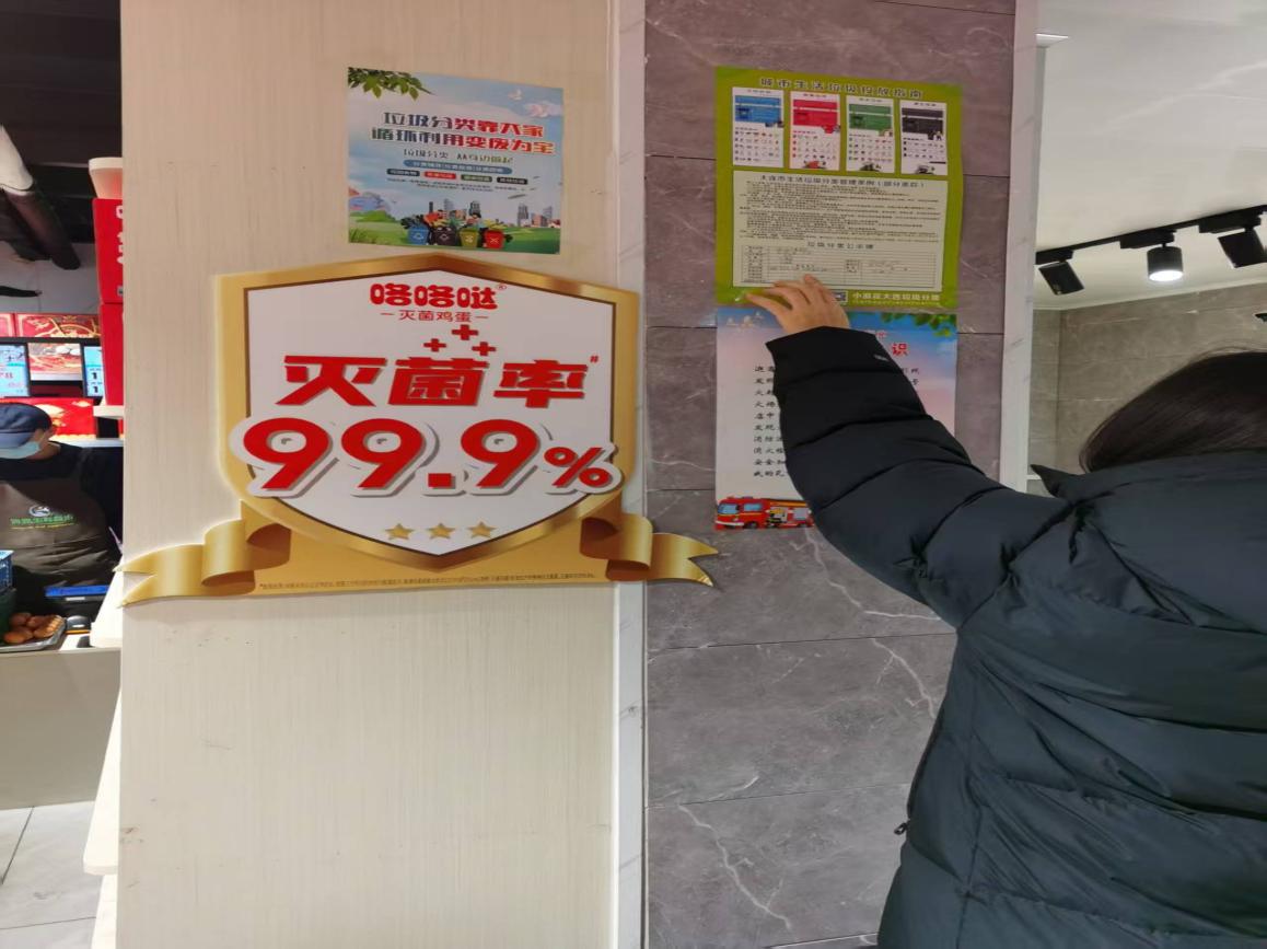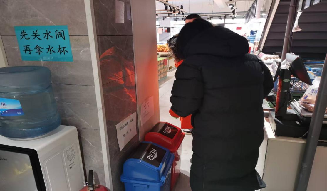 检查人员重点查看超市内垃圾分类设施配置情况,确认是否按要求设置投放容器,且容器标识清晰规范。同时,对超市垃圾的分类投放、收集转运情况进行细致核查,询问工作人员垃圾分类相关知识掌握情况。