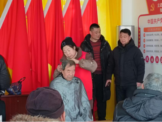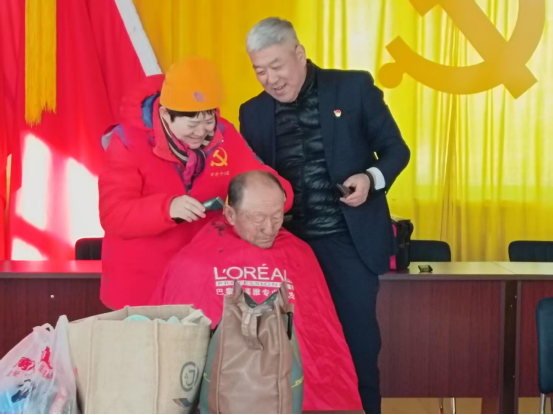 活动现场暖意融融,爱心团队志愿者分工协作、精准服务。志愿者们为村里捐赠了涵盖少儿读物、农业技术、经典名著等类别的图书,丰富村民精神文化生活;聚焦老党员群体,为老党员送上保暖衣物、米面油及春节挂饰,与老党员亲切交谈,关切询问身体状况与生活需求。同时,志愿者还为老年人提供免费理发服务,专业细致的服务赢得村民一致好评。
