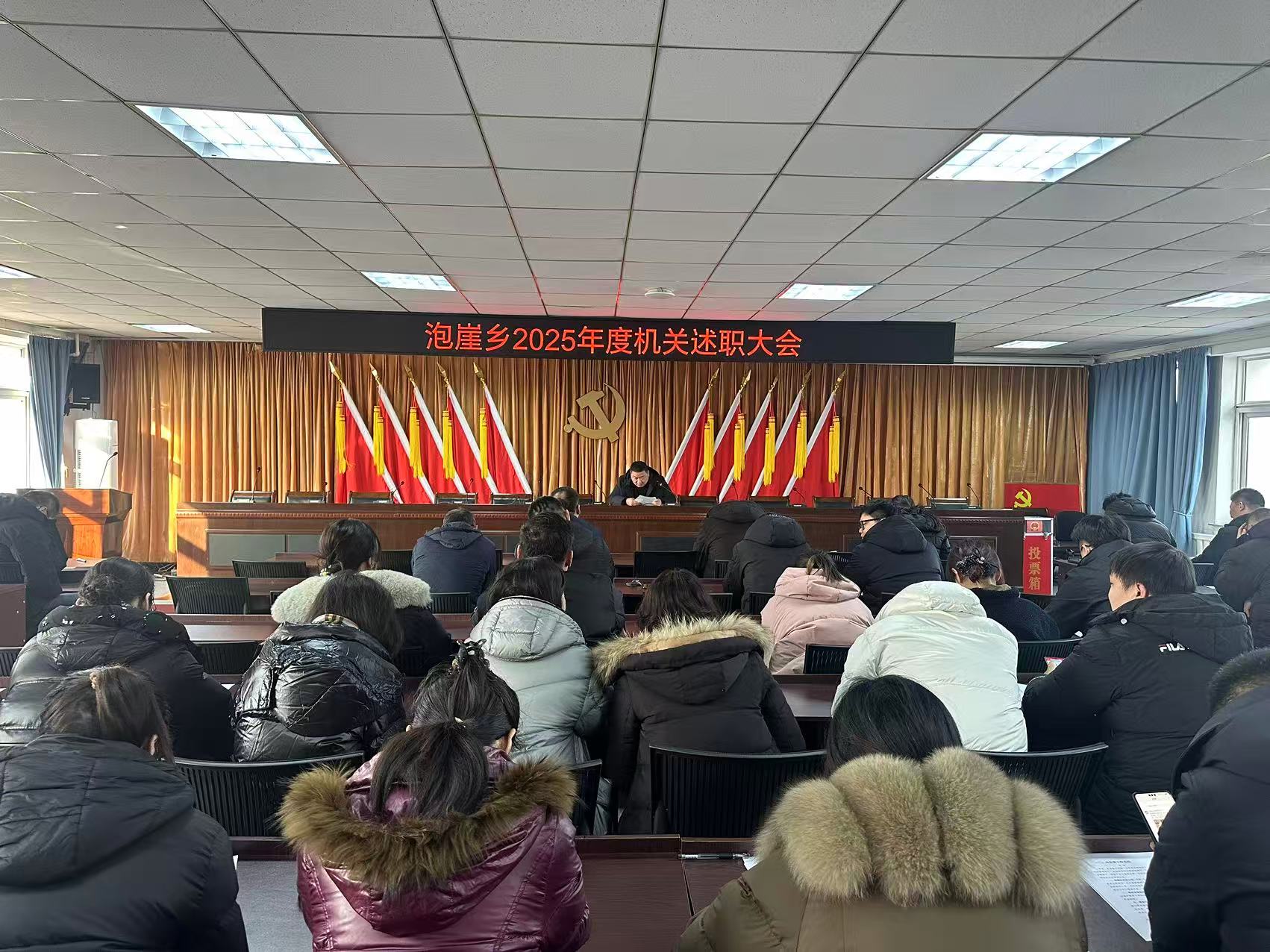 为全面盘点2025年工作成效、查摆问题不足,明确2026年工作方向,泡崖乡召开2025年度机关干部述职大会,全体机关干部参会。