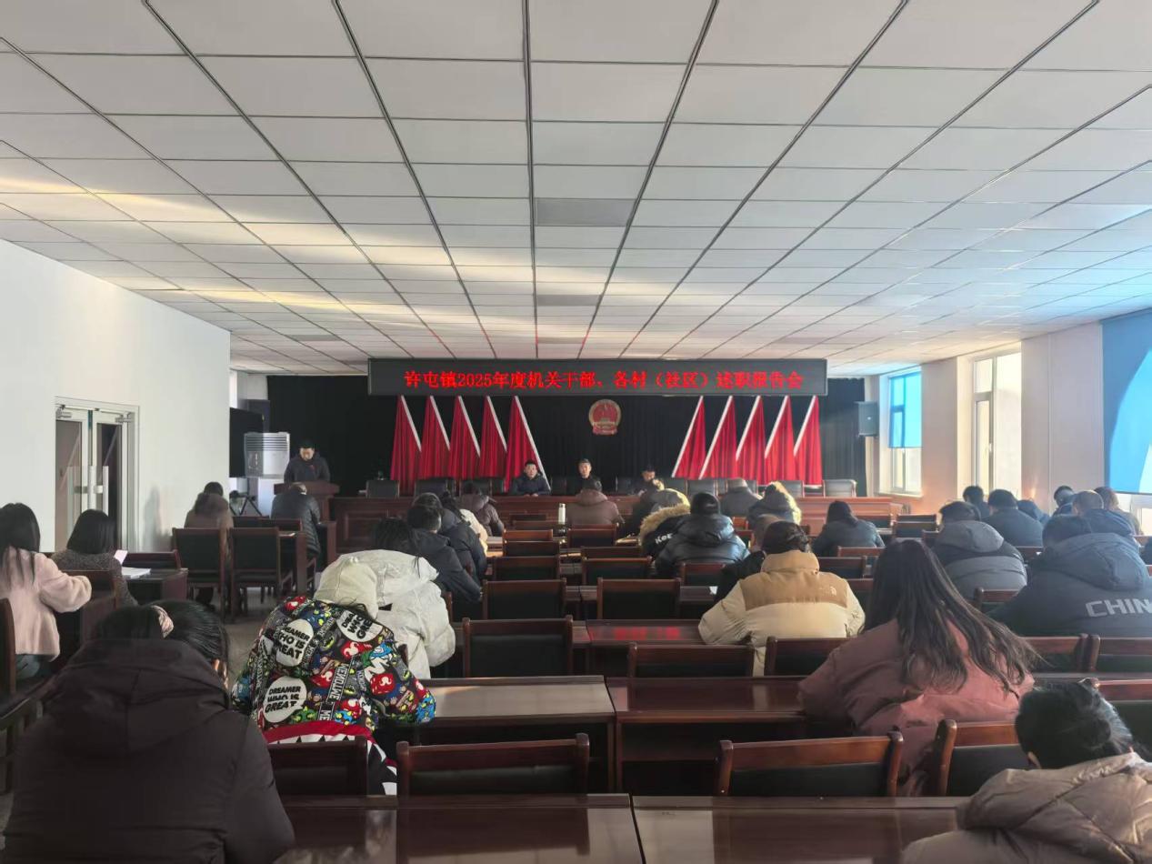 为全面检验2025年度工作成效,压实干部履职责任,激发干事创业内生动力,近日,许屯镇召开2025年度机关干部、各村(社区)述职报告会。镇领导班子成员、全体机关干部、各村(社区)党总支书记参加会议。