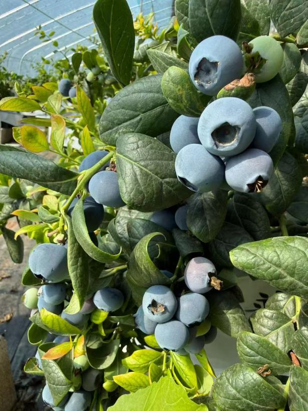 西杨乡二道岭村蓝莓采摘园由本地农户自主经营管理,坚持绿色生态种植,采用盆栽精细化管护,单座大棚栽植蓝莓约900盆,今年首次挂果便迎来丰收。园区严格遵循自然成熟规律,不催熟、零添加,果实果粉厚实、果肉细腻、清甜多汁,2月中下旬至3月初集中上市,目前已全面进入最佳采摘期,是早春时节不可多得的时令鲜果。