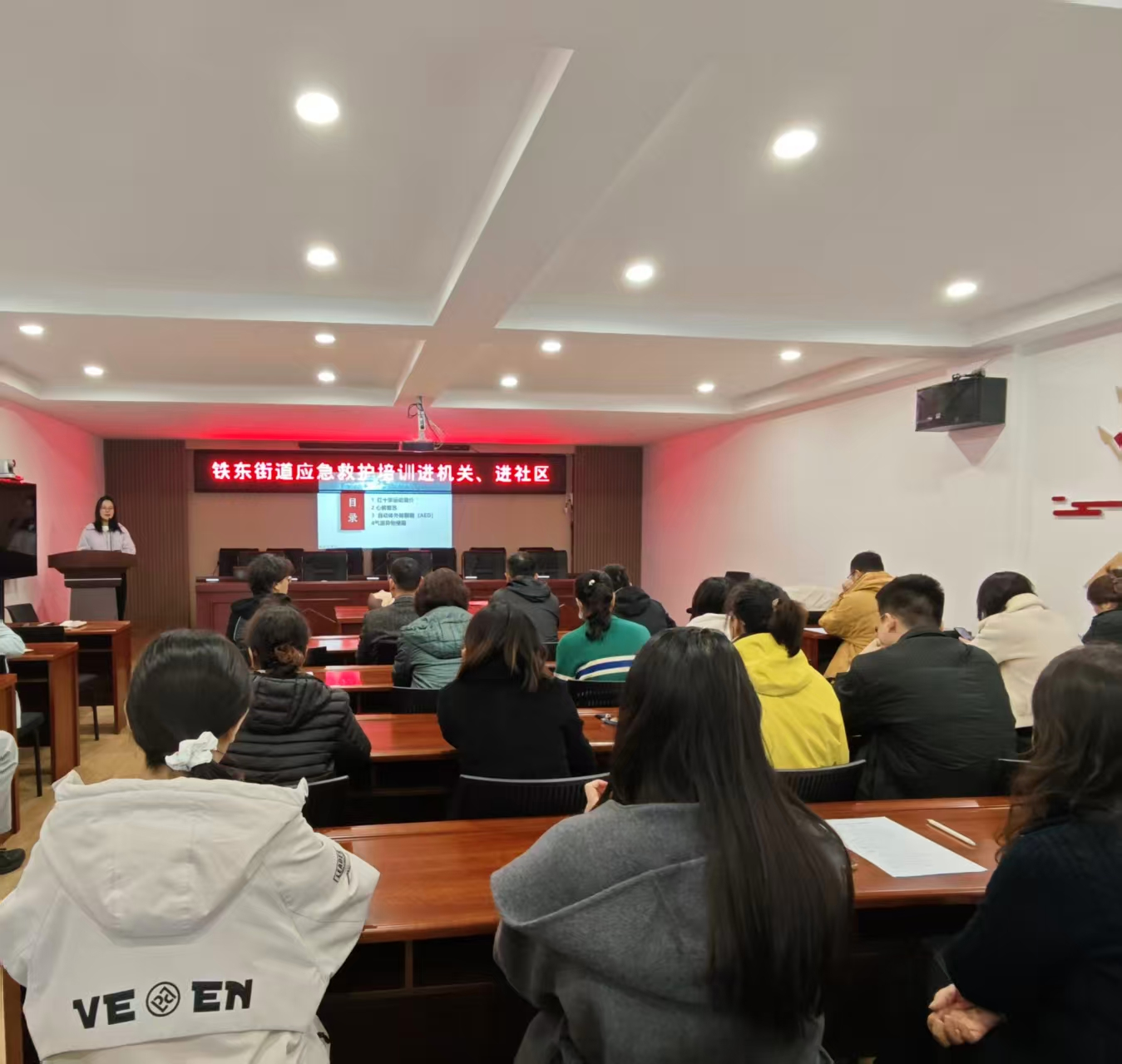 为进一步提升铁东街道机关干部的应急处置能力和自救互救水平,普及心肺复苏及AED使用等专业急救知识,近日,铁东街道组织开展应急救护培训“进机关、进社区”活动。本次活动特邀瓦房店市红十字会相关人员莅临授课,铁东街道机关干部及社区工作人员40余人积极参与。
