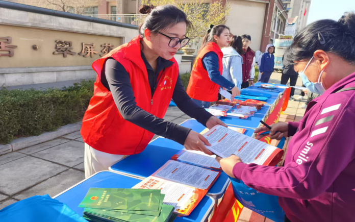 兴盛社区妇联在辖区活动广场向居民发放安全知识宣传单,普及国家安全、反诈、消防等常识,共筑平安家园,守护你我安全。